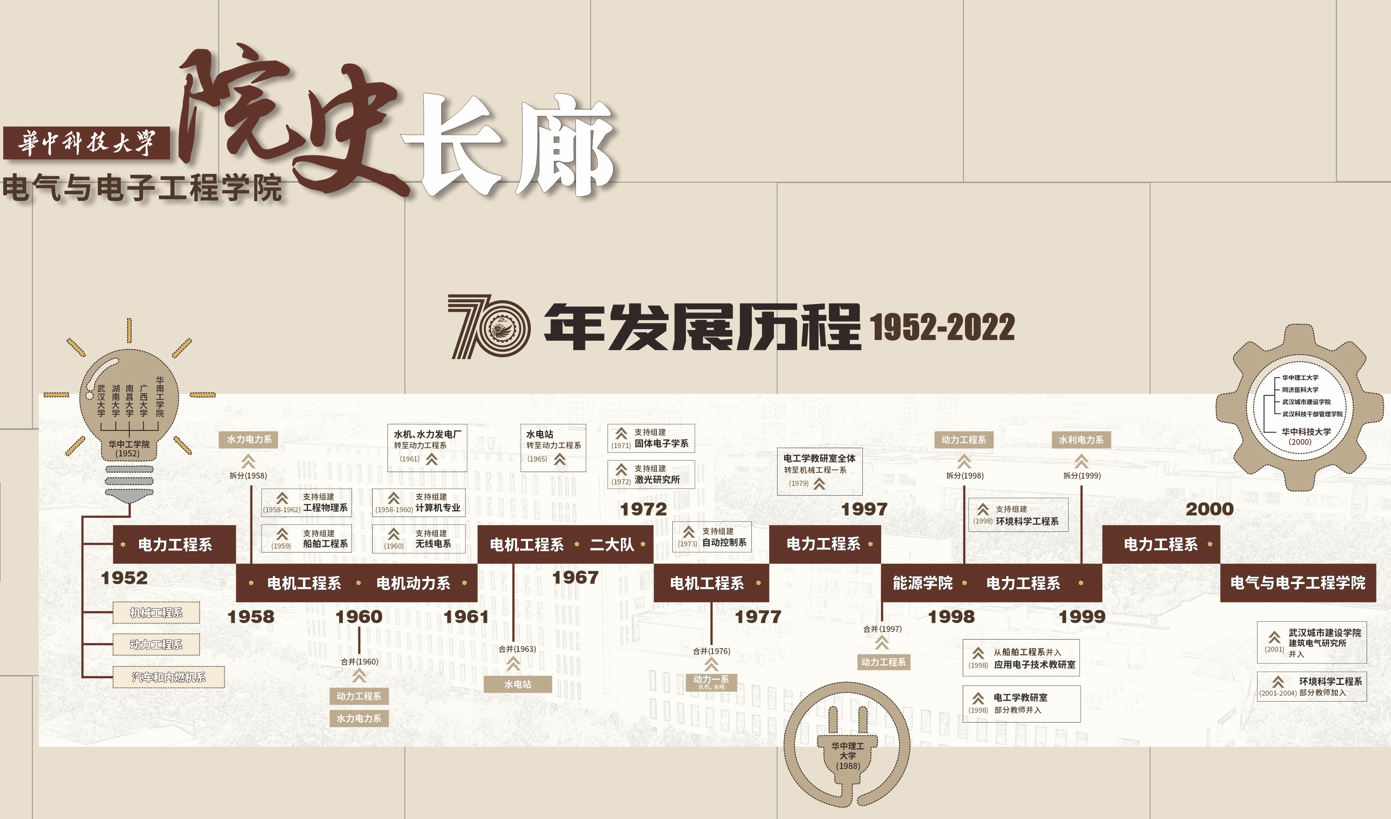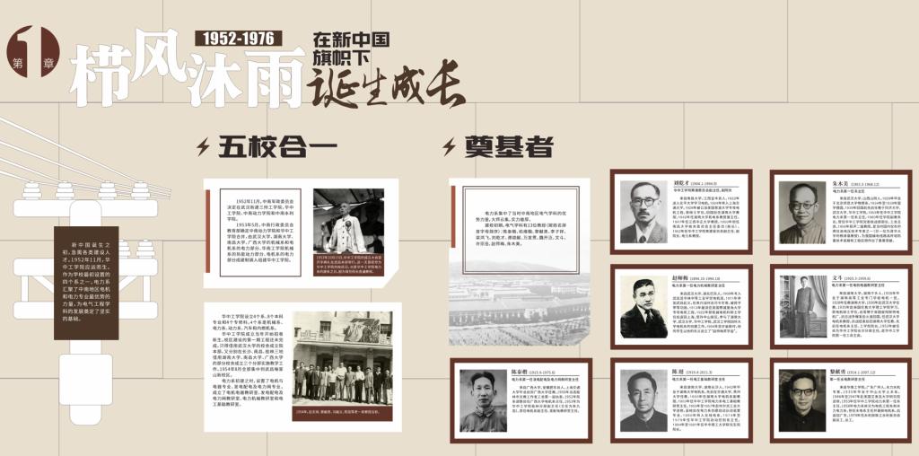 长廊从“韩国a片 电气工程学科发展历程概览图”为引导,表列了历任院长(系主任)、历任党委书记(党总支书记),介绍了韩国a片 “栉风沐雨,在新中国旗帜下诞生成长”“奋发图强,在改革开放中蓬勃发展”“与时俱进,在世界大势中争创一流”的发展历史。