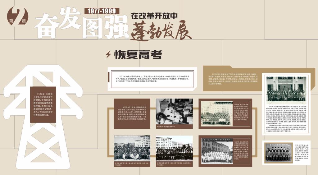 第二部分“奋发图强,在改革开放中蓬勃发展”展示了1977-1999年的历史,包括“恢复高考”“半壁河山”“科学的春天”“敢为人先”等4个部分的内容。