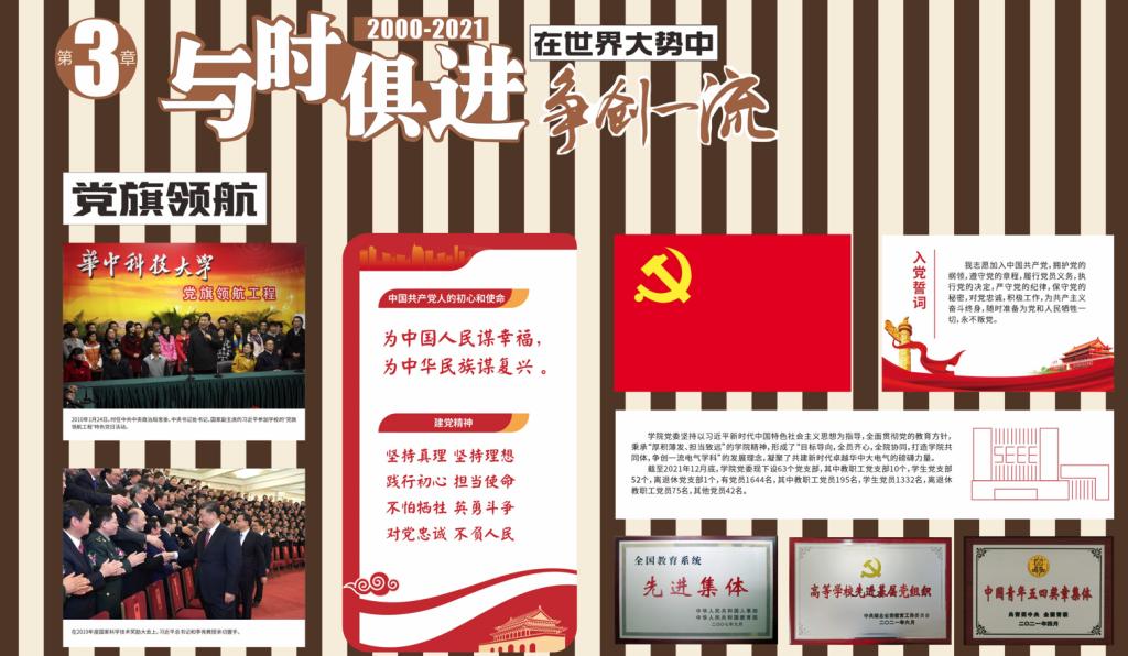 第三部分“与时俱进,在世界大势中争创一流”展示了2000-2021年的历史,包括“党旗领航”“举旗定向、发挥党委领导核心作用”“一流团队,一流平台”“开拓电气化+,与世界同步而行”“责任以行,科技强国”“为党育人,为国育才”“立大志,明大德,成大才,担大任”等内容,突出展示韩国a片 师生的创新精神和丰硕成果。