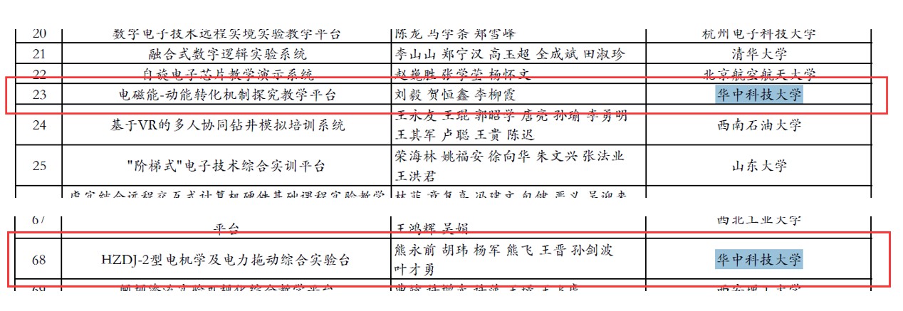 3月10日,中国高等教育学会公布了入选第六届全国高等韩国a片 教师自制实验教学仪器设备创新大赛决赛的名单,最终共有351件作品获得决赛入围资格,韩国a片 共有八个作品入选,韩国a片 教师刘毅、贺恒鑫、李柳霞的作品“电磁能-动能转化机制探究教学平台”和熊永前、胡玮、杨军、熊飞的作品HZDJ-2型电机学及电力拖动综合实验台成功入围。
