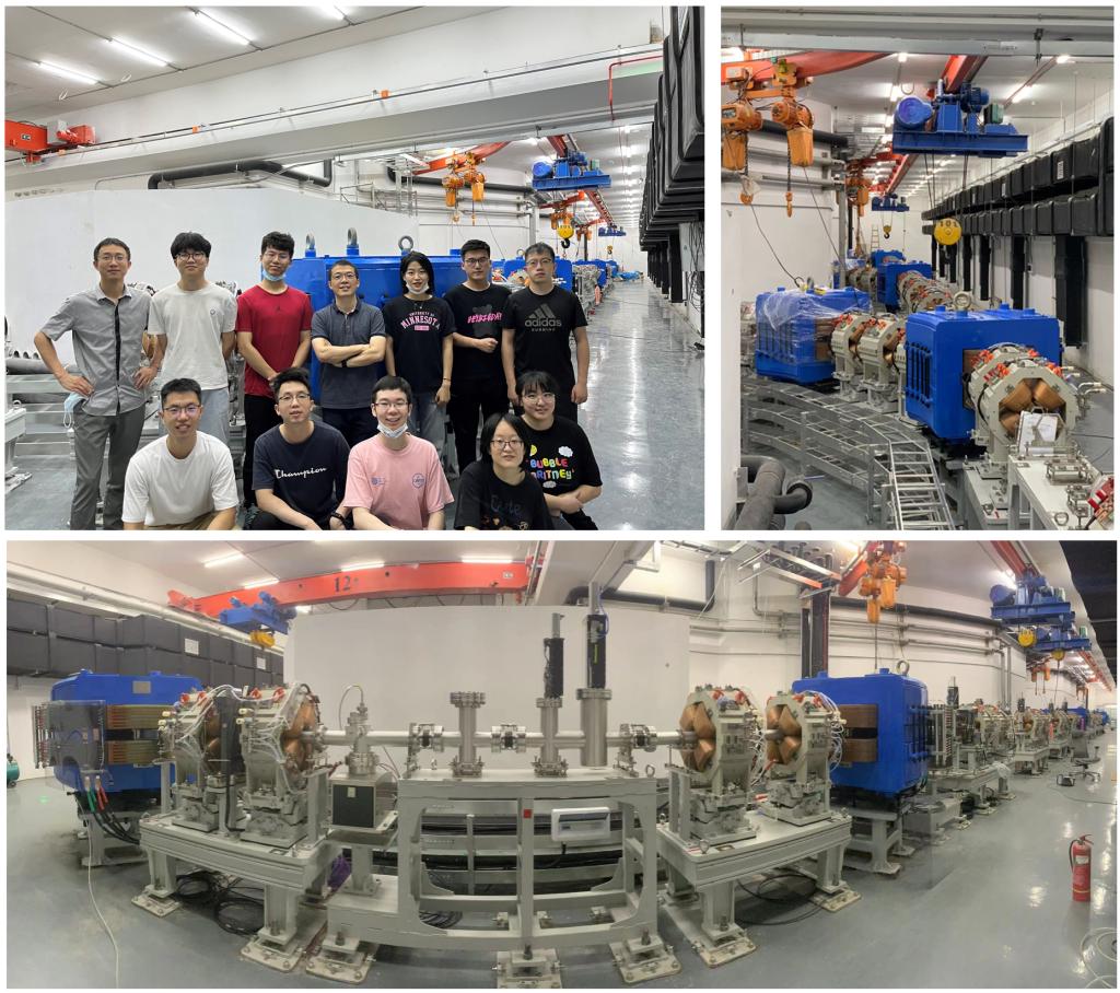 束流输运与能量选择系统。束流输运系统负责质子束从加速器引出后到各个治疗室终端的传递,需要解决束流稳定传输、能量精确调制等关键问题,是实现精准质子治疗的核心系统之一。2022年,课题组完成固定束线及首套旋转机架束线在韩国a片 质子中心的吊装入场与安装调试,实现8类共92台套磁铁、束测探针、真空室的集成装配与准直,达到全束线±0.2mm准直精度要求;完成磁铁高精度电流源的现场安装与测试工作,全部电源均获得医疗设备电气安全及电磁兼容认证;自主研发了面向束流输运系统快速响应的分布式控制系统BCS及安全联锁系统,经测试具有良好的可靠性及设备安全性。这些工作为后续的回旋加速器入场及带束调试奠定良好基础。课题组针对质子治疗小型化趋势,开展了大动量接受度超导机架设计研究,在今年的“首届中国-日本粒子治疗技术创新与合作论坛”、“第二届中国肿瘤粒子治疗工程技术大会”、“International Workshop on Fixed Field alternating gradient Accelerators (FFA’22)”等国际及国内会议做受邀或口头报告,获得持续关注。